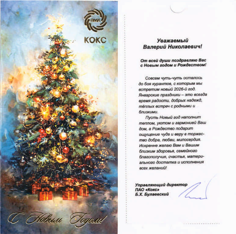 Поздравление от управляющего директора ПАО «Кокс» Б.Х. Булаевского