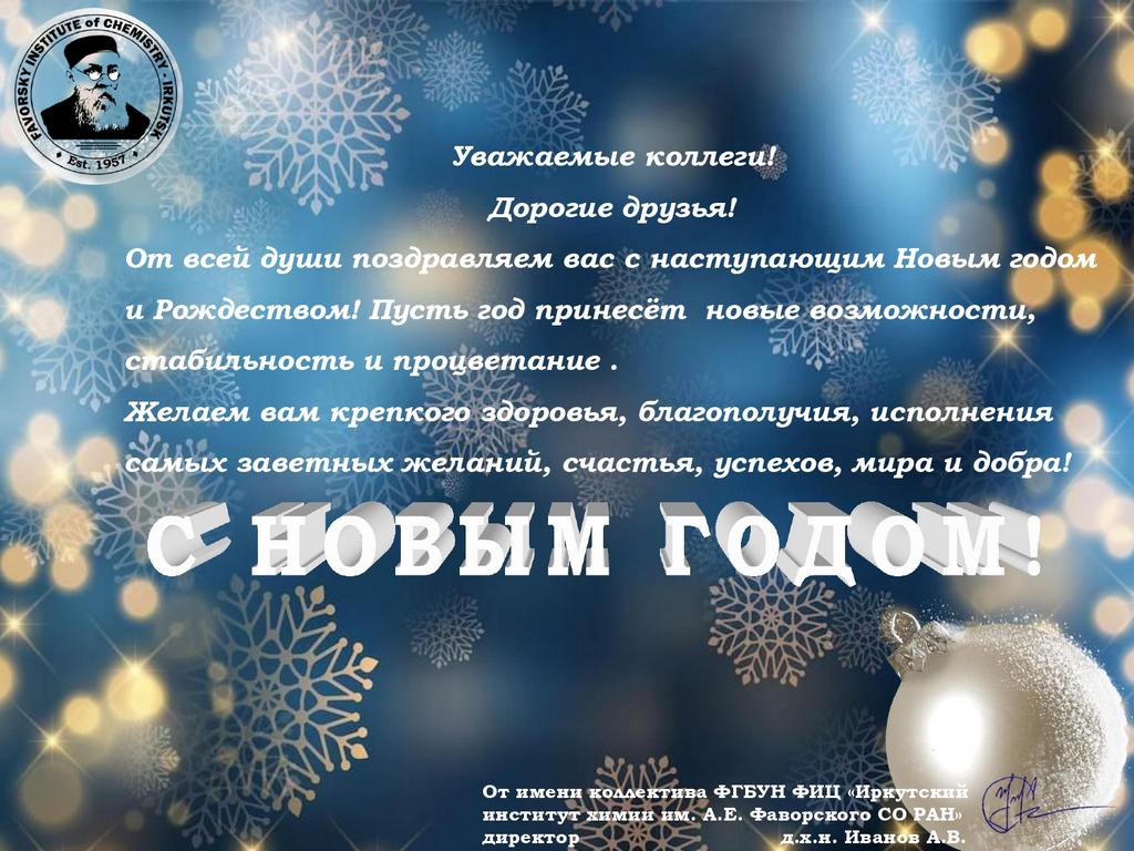 Поздравление от Иркутского института химии им. А.Е. Фаворского СО РАН
