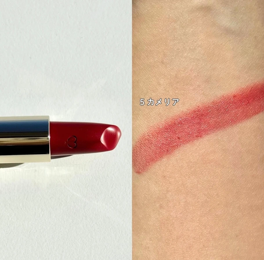 Помада с ароматом натуральной розовой эссенции выпущена в лимитированной упаковке с бабочками сочетает в себе свойства декоративной косметики и ухода за кожей. Памада хорошо пигментирована, обеспечивает ровное покрытие насыщенного цвета одним движением, сияющий блеск и длительное увлажнение. Формула содержит питательные ингредиенты, в том числе и высококачественное аргановое масло. Помада представлена в оттенке 5 Camellia — насыщенный красный цвет, который придаст вам гламурный вид.