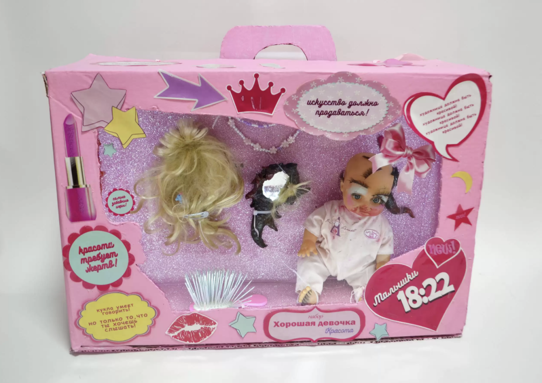 Без названия, Алина Глазун, Myth gallery, 360 000 руб.«Настенный объект с лебедями сочетает в себе всё, что я люблю: яркую визуальность, иронию, нотки мемности и даже бархатный занавес»