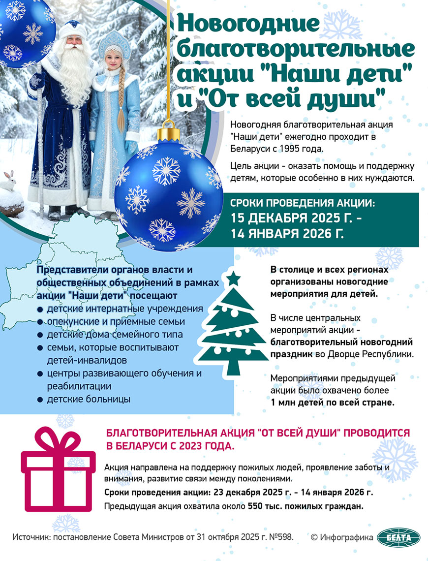 "Такие встречи дарят радость не только детям, но и нам, взрослым, - сказал Юрий Караев. - Посмотришь на ребят - и тепло на душе, поднимается настроение. У нас спокойная, мирная страна. Нужно, чтобы она была такой и дальше. Чтобы детки выросли здоровыми, умными, пошли в школу, учились и взрослели в благополучной стране. Как сказал глава государства на Всебелорусском народном собрании, чтобы не было никаких потрясений. Это и есть счастье, когда все спокойно строится, спокойно пашется, никто не воюет, люди радуются таким простым радостям, как Новый год".