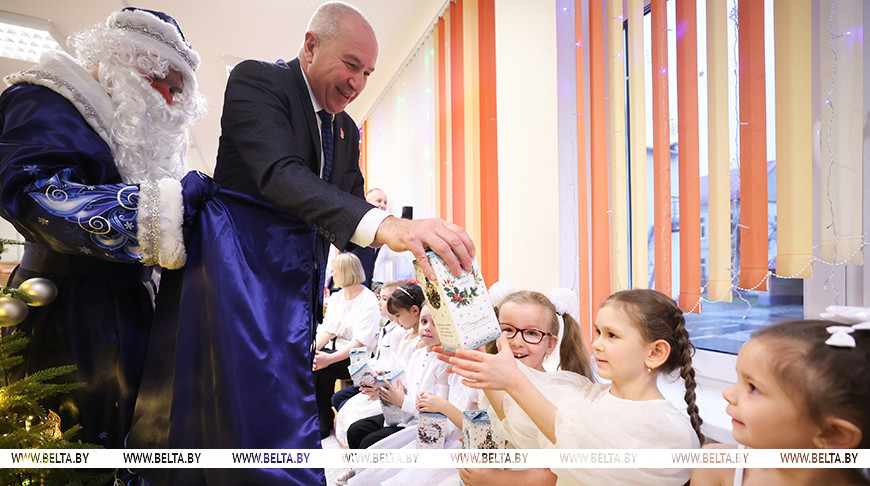 23 декабря, Гродно /Корр. БЕЛТА/. Воспитанников специального детского сада №21 Гродно поздравил с новогодними праздниками во время акции "Наши дети" председатель Гродненского облисполкома Юрий Караев, передает корреспондент БЕЛТА.