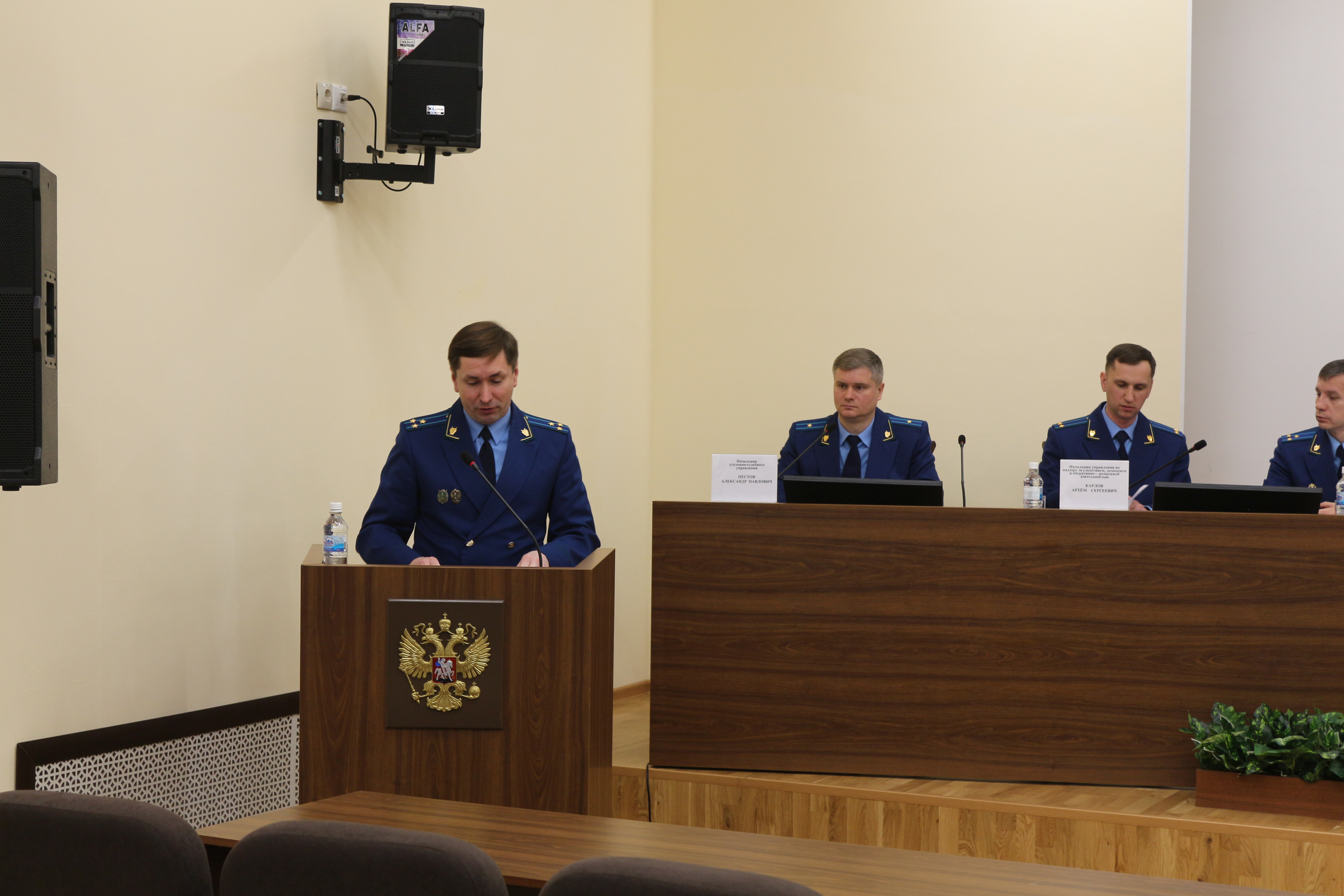 С основным докладом выступил начальник управления по надзору за следствием, дознанием и оперативно-розыскной деятельностью Артем Карлов.