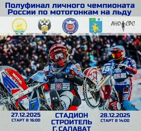 Комиссия трековых гонок (КТГ) мотоциклетной федерации России (МФР) отменила полуфинал личного чемпионата России по ледовому спидвею, который 27-28 декабря должен был состояться в Салавате (Башкортостан). Причина — не соответствие толщины ледового покрытия для проведения соревнований. По решению КТГ, право стартовать в финальной стадии национального Гран-при без отбора получили 9 лучших гонщиков отмененных состязаний. Для определения «девятки» учитывались результаты прошлого сезона.