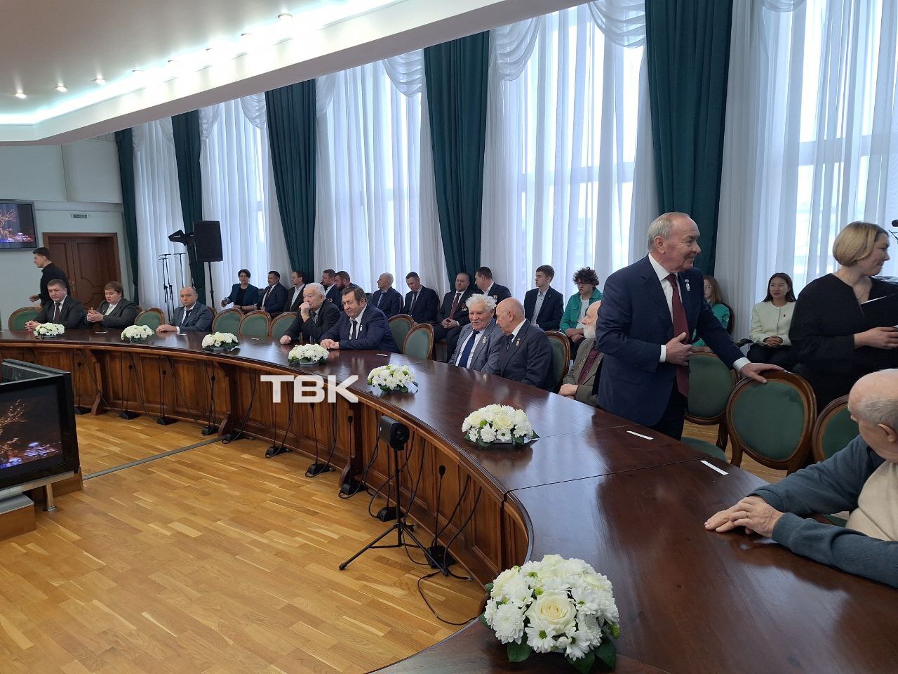 Поздравление от Михаила Котюкова прочитал первый замгубернатора Сергей Пономаренко. Сам Михаил Котюков на мероприятии отсутствовал, поскольку уехал в Москву на заседание Госсовета.