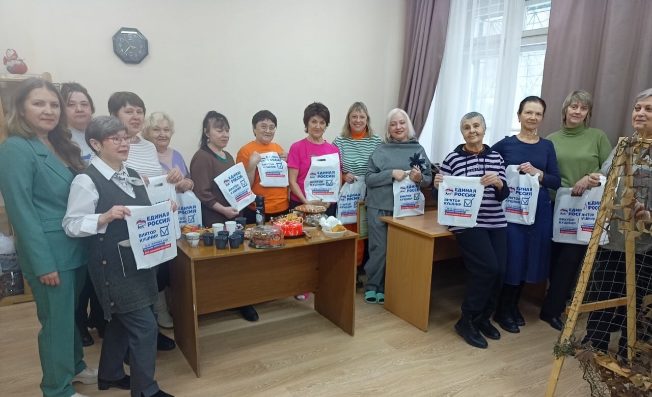 Секретарь местного отделения «Единой России» Ленинского района, депутат заксобрания Виктор Кушнир поздравил участниц группы «Надёжный тыл».