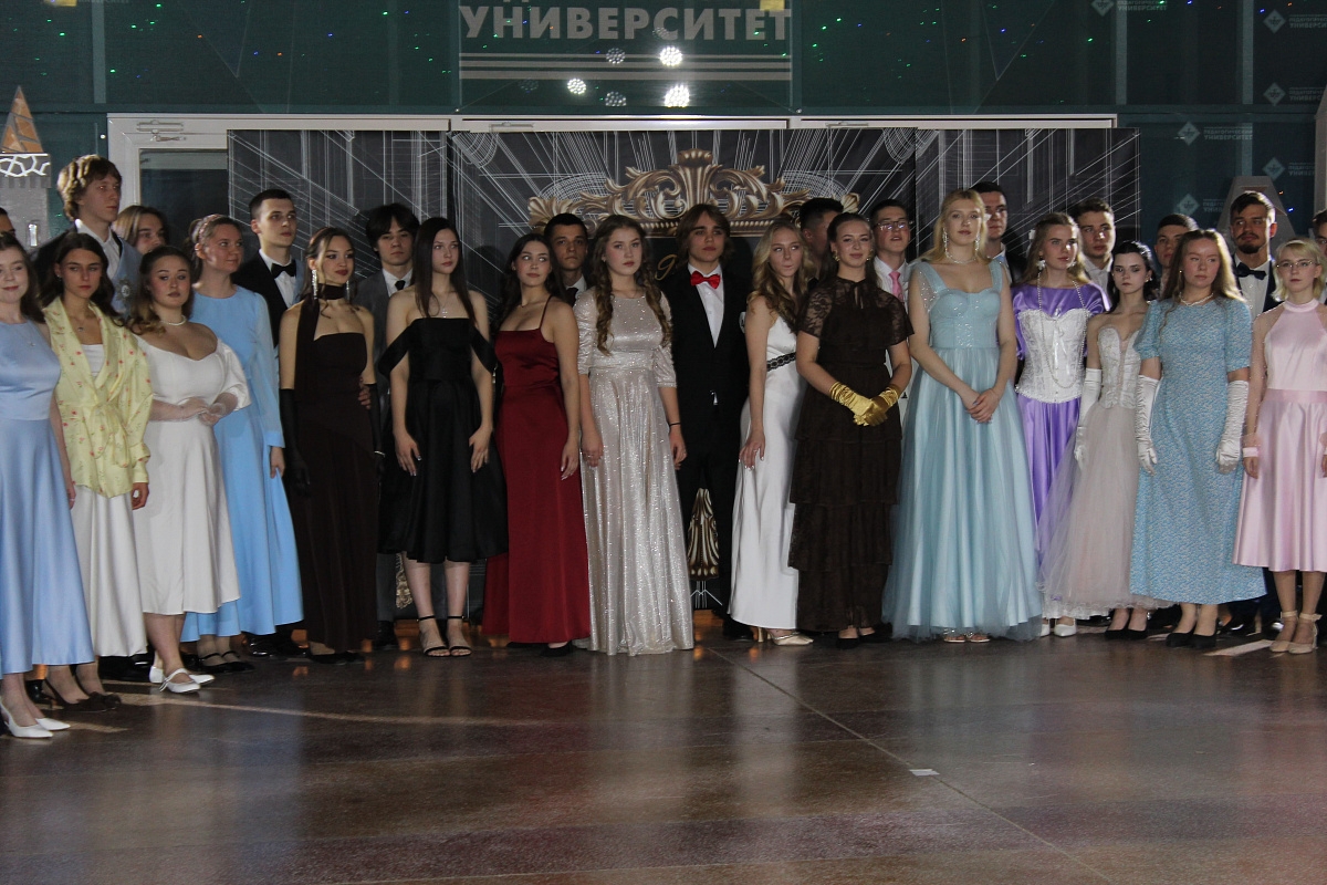 Бал открыли торжественным танцем-шествием, прогулкой под музыку – полонезом – и.о. ректора УрГПУ Юрий Биктуганов и проректор по воспитательной работе и молодежной политике Анастасия Тенихина. К ним присоединились студенческие пары.