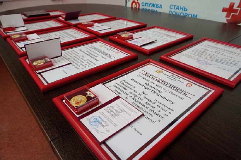 Торжественное вручение соответствующих удостоверений и нагрудных знаков, а также благодарственных писем прошло в Кировском центре крови.