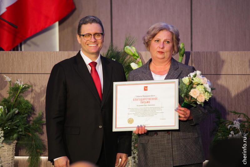 Награды химикам вручили депутат Заксобрания директор химико-технологического колледжа Елена Быкова и председатель Гордумы Череповца Илья Ивашов.