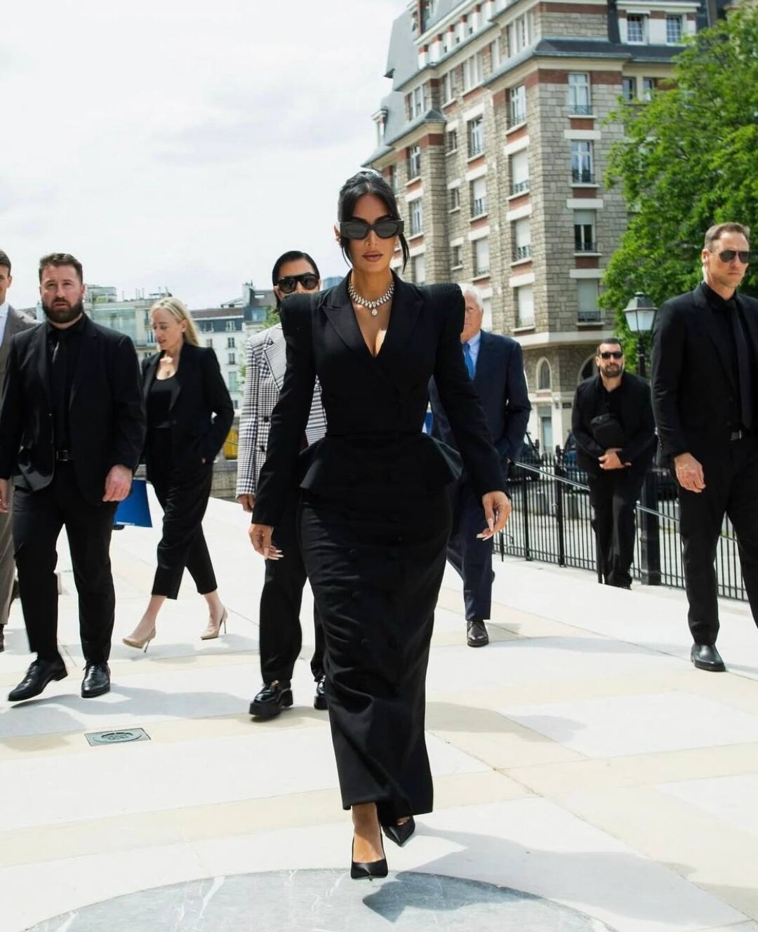 Ким Кардашьян в винтажнои платье John Galliano по пути в здание суда в Париже
