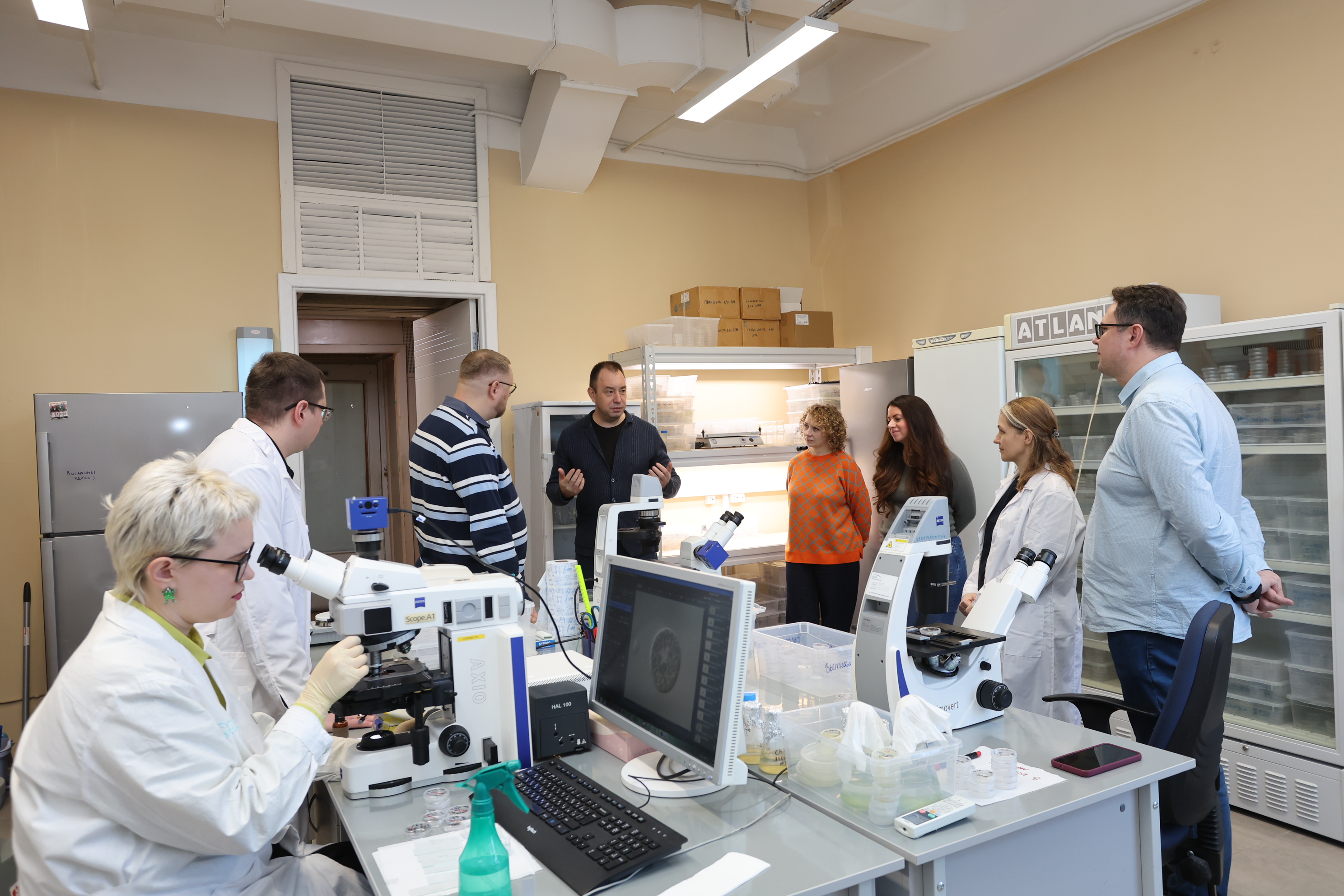 В рамках посещения лабораторий о своих исследованиях, поддержанных Фондом, рассказали: Анна Степанова, Николай Злобин, Дмитрий Лось и Роман Сидоров, Юлия Венжик, Андрей Фролов, Надежда Фролова, Владимир Кузнецов, Павел Пашковский, Максим Куликовский, Елена Кезля, Дмитрий Капустин, Антон Глущенко, Сулейман Аллахвердиев, Александр Носов.