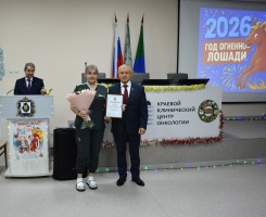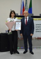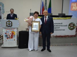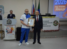 Отдельные сотрудники Онкоцентра были отмечены Почетными грамотами и Благодарностями учреждения и краевого министерства здравоохранения. Их вручил Главный врач – Алексей Веселов.