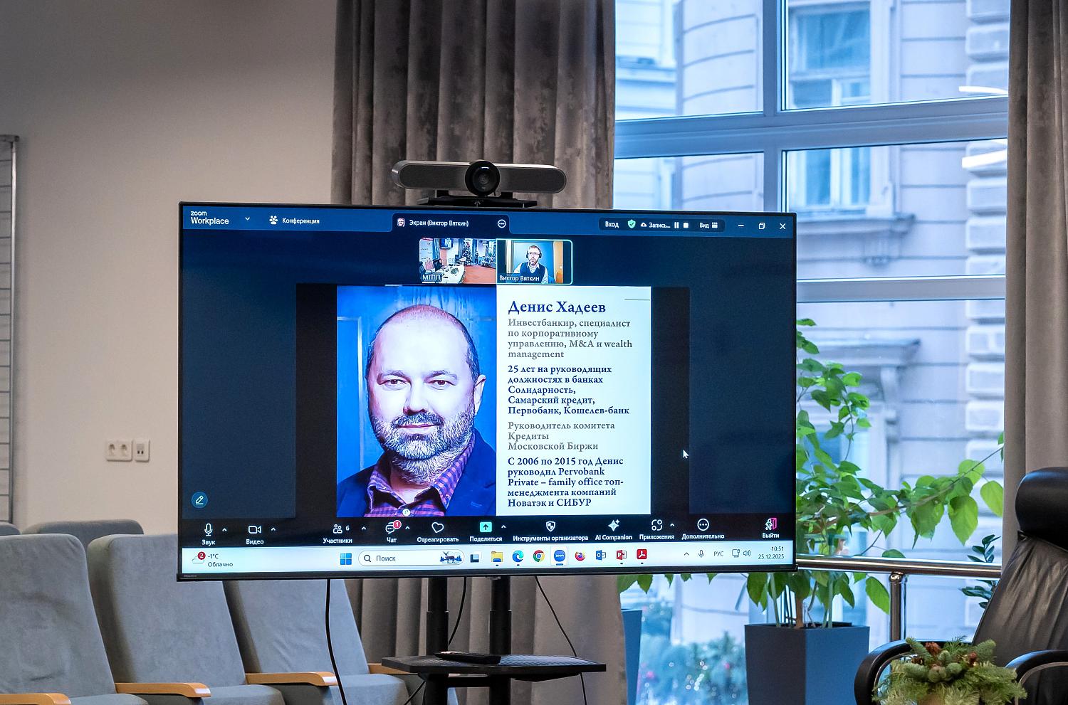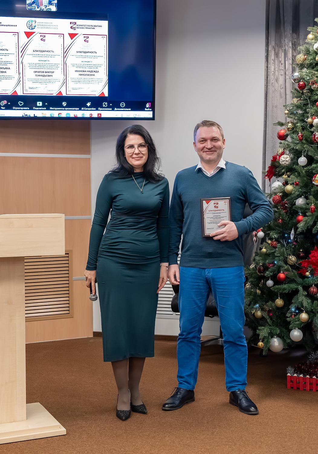Генеральный директор компании ООО «3В Консалтинг» Виктор Вяткин и инвестбанкир, руководитель комитета «Кредиты» Московской биржи, специалист по корпоративному управлению Денис Хадеев награждены в номинации «Вклад в развитие системы корпоративного управления в России». Виктор Вяткин выступил с докладом «Корпоративное управление с фокусом на преемственность: семь шагов к успеху», в котором рассказал о развитии и оценке уровня системы корпоративного управления на основе бизнес-игры «Скелет бизнеса: модель тигра».