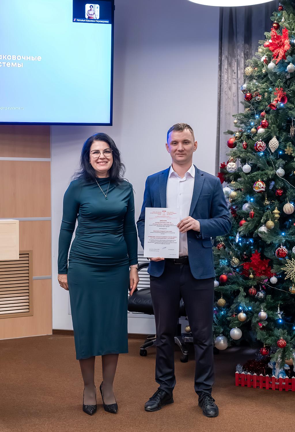 Эксперт по программной роботизации ООО «Упаковочные системы» Андрей Деревнин получил диплом в номинации «Вклад в развитие роботизации в системе взаимодействия с заказчиком». Он сделал доклад на тему «Практика расчета трудозатрат на разработку программного робота», в котором представил воронку автоматизации, диаграмму процессов автоматизации, влияние практики на организацию рабочего цикла и т.д.