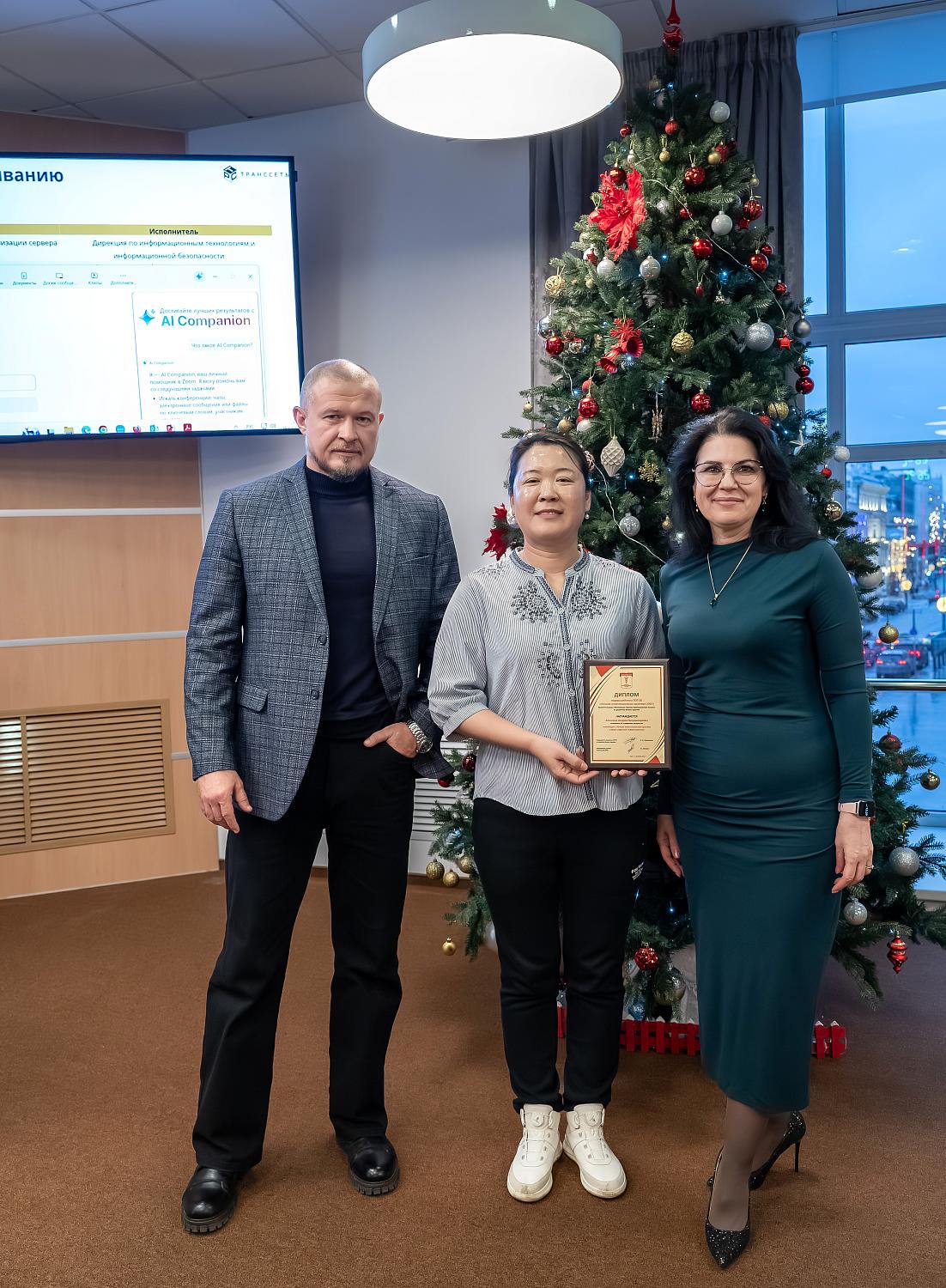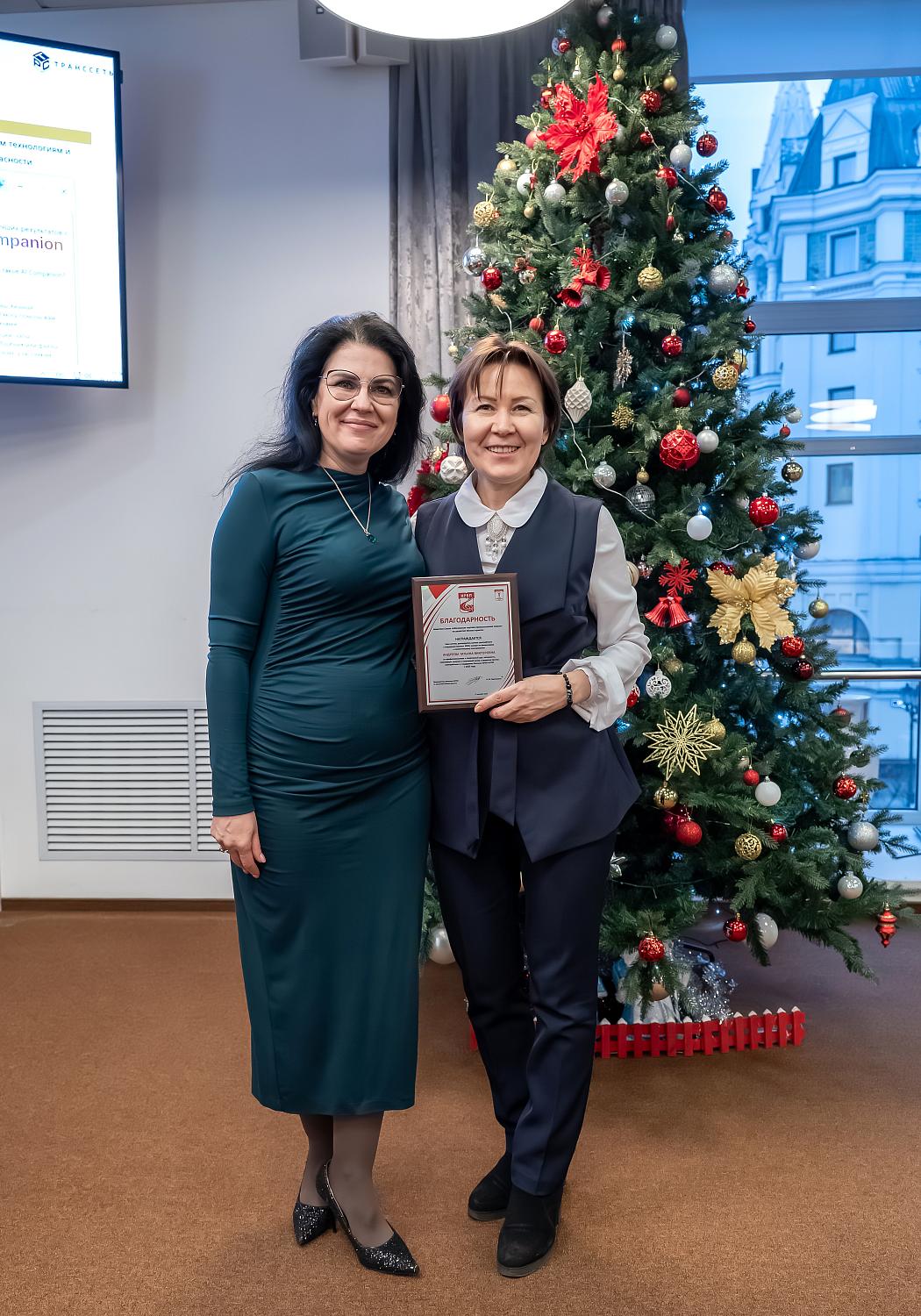 Коллектив компании «Транссеть» награжден в номинации «За вклад в комплексные IT-решения» Ведущий бизнес-аналитик компании Наталия Коробова сделала доклад о разработке AI-ассистента (цели и задачи проекта, подходы к разработке, сроки реализации, описание бизнес-модели, действия по развертыванию и т.д.). Ведущий системный аналитик компании Антонина Сальникова рассказала о разработке mes-системы АО «Транссеть».