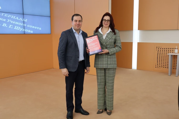 Почётная грамота ректора БГТУ им. В.Г. Шухова за высокие достижения в научно-образовательной деятельности и добросовестный труд вручена директору научно-образовательного центра «Цифровая безопасность и противодействие коррупции», доценту кафедры социологии и управления Марине Молчановой.