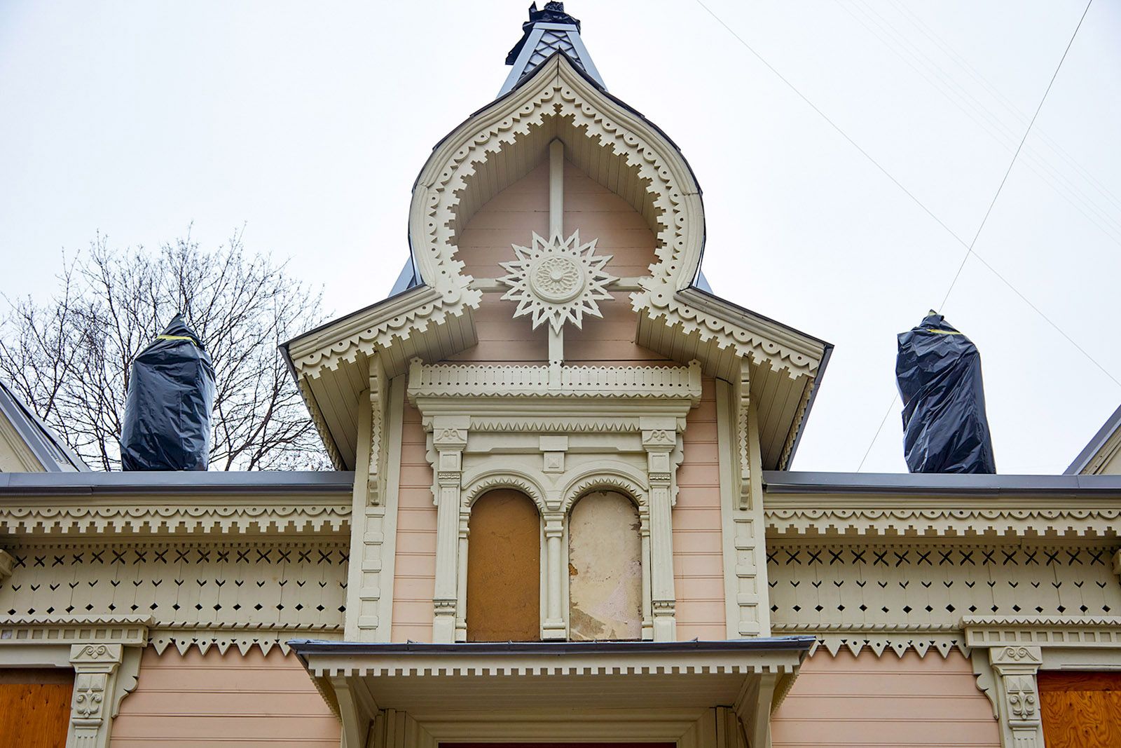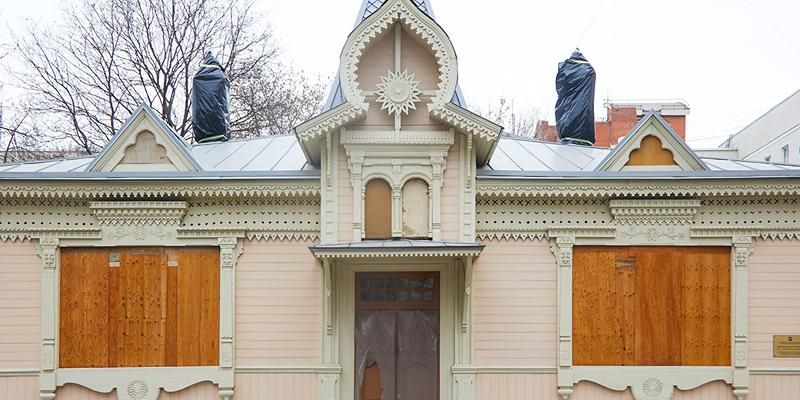 «Небольшой дом братьев Страховых — памятник деревянного зодчества с многолетней историей. Сейчас близится к завершению реставрация фасадов этого исторического здания. Специалисты уже отреставрировали шатер с бочкой, элементы подлинного деревянного резного декора, исторические двери, элементы деревянного козырька, кирпичного цоколя, а также вернули дому исторический цвет», — рассказал руководитель Департамента культурного наследия города Москвы Алексей Емельянов.