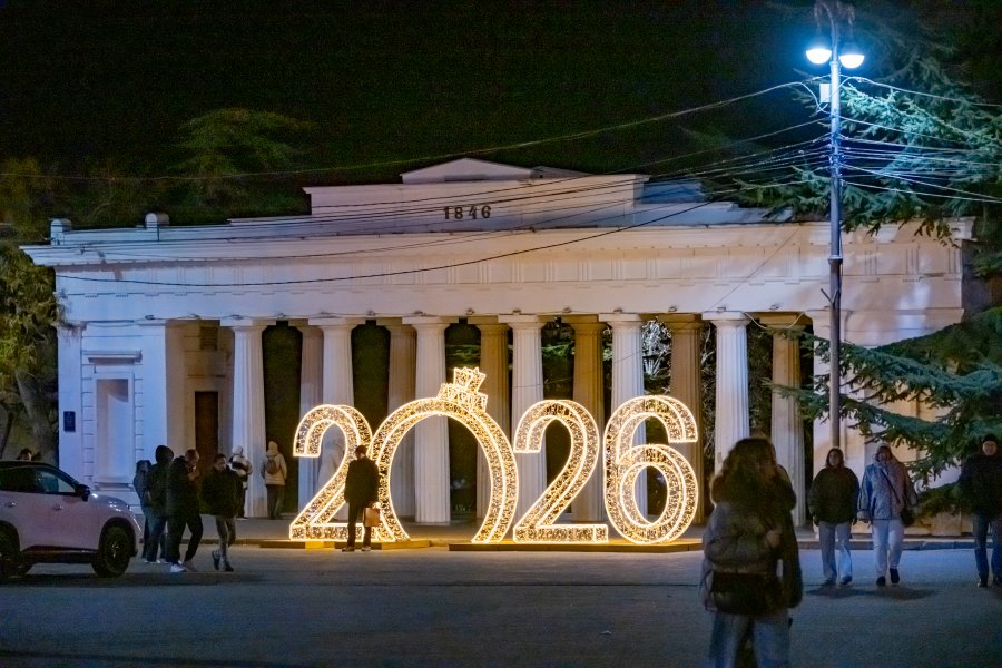 В этом году на Графской пристани установили праздничную инсталляцию в виде корабля с парусами. Обновили цифры на главной площади, создали небольшой световой тоннель и дополнили все праздничной ярмаркой.