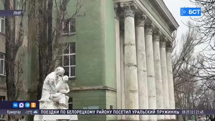 Первый праздничный концерт на реконструированной сцене. Новое дыхание обрёл дворец культуры в городе Красный Луч, подшефном Башкортостану. В историческом здании, построенном силами шахтеров и местных жителей в 1934 году, были завершены ремонтные работы. Творческие коллективы уже готовятся к празднованию Нового года.