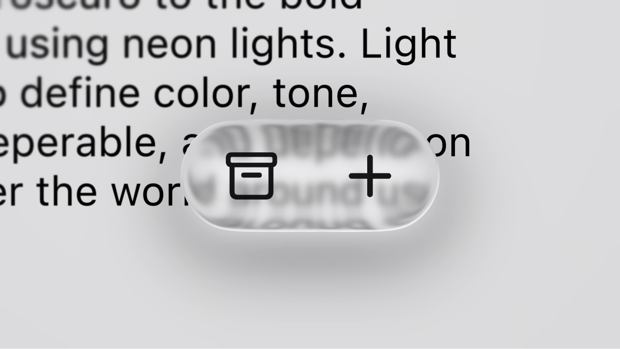 Liquid Glass не просто преломляет свет — он светится в буквальном смысле. Особенно это заметно при взаимодействии. При касании материал оживает: заливается светом и плавно меняет форму, как пузырёк воды.