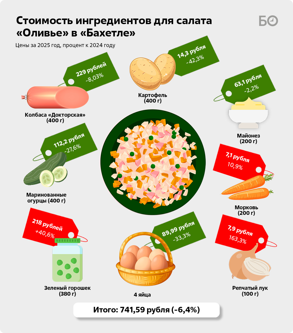 Реальный индекс оливье и селедки под шубой из «Бахетле» и «Ашана»