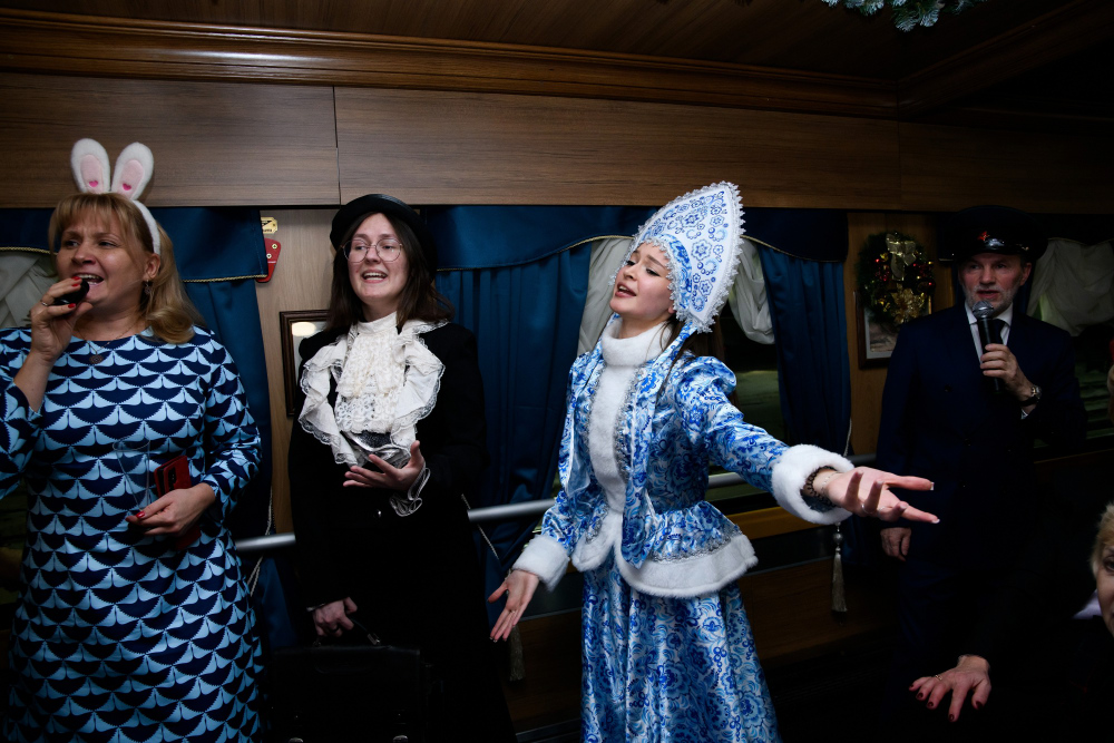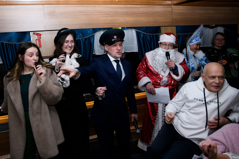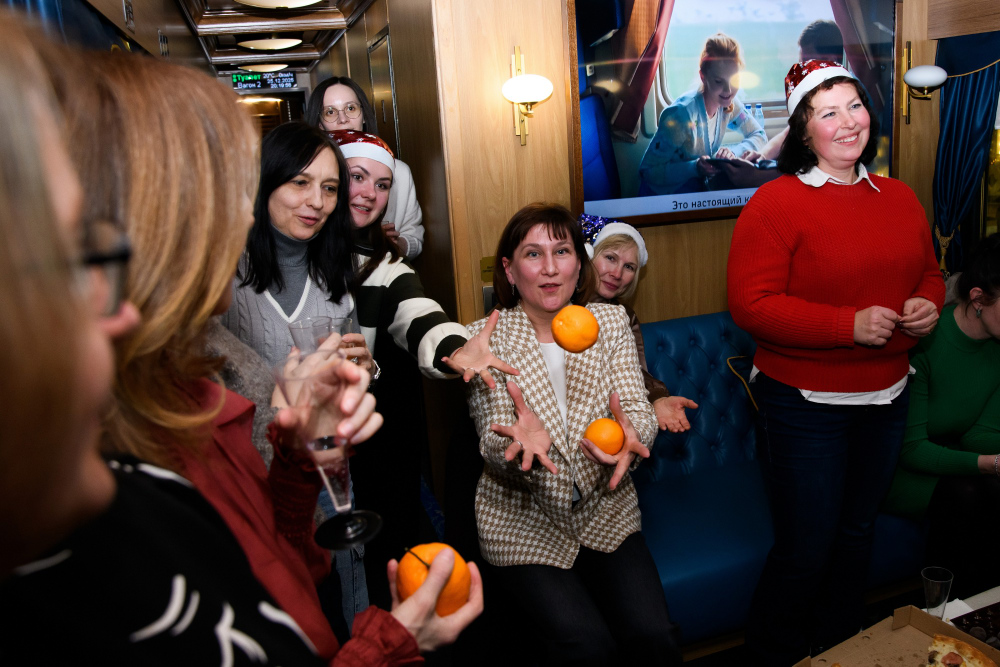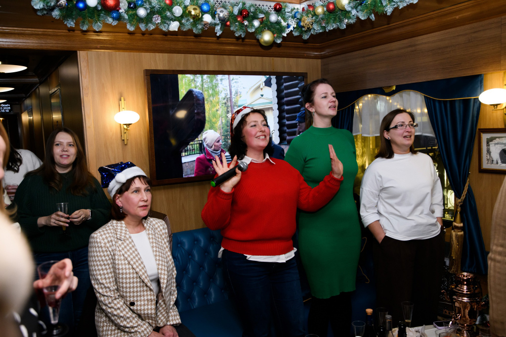 Три часа в атмосфере начала XX века — и в то же время в самом сердце сегодняшнего дня. В вагонах, наполненных уютом старинного поезда, звучали смех, шутки, музыка под караоке и дружные голоса. Коллеги соревновались в эрудиции и находчивости в новогодних викторинах, делились историями, мечтами и планами на будущее.