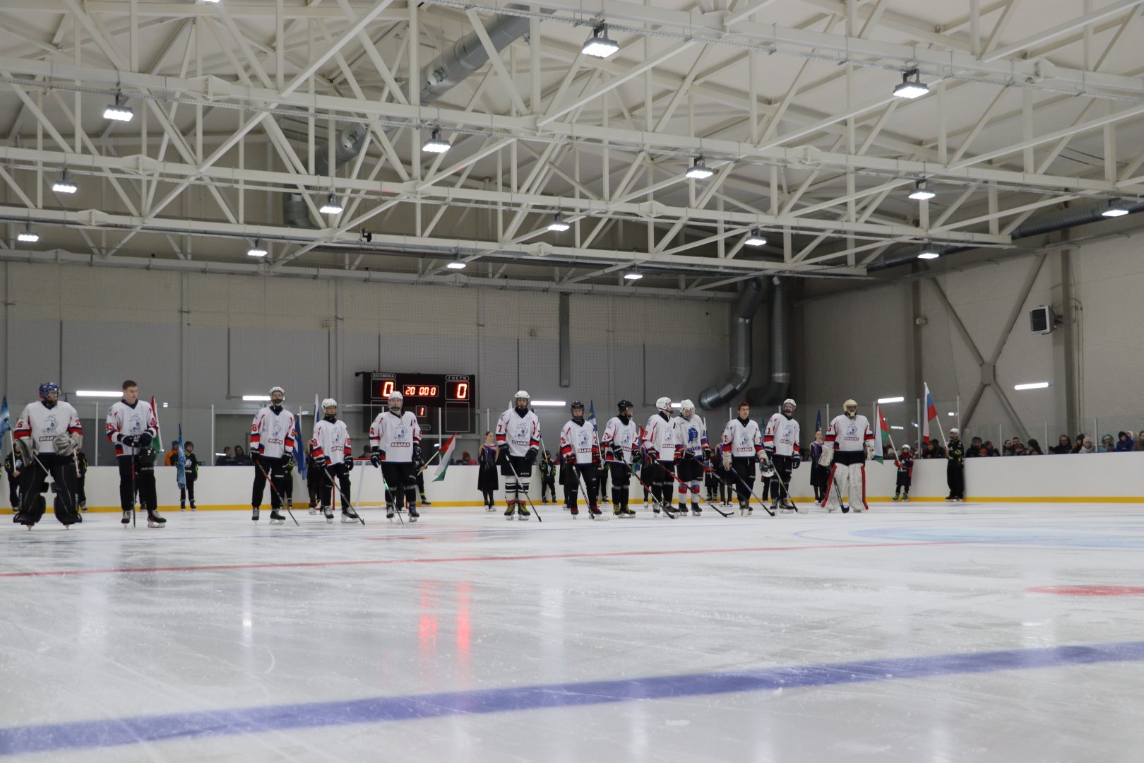 Старт товарищеской встрече по хоккею дал Александр Моор, вбросив шайбу.