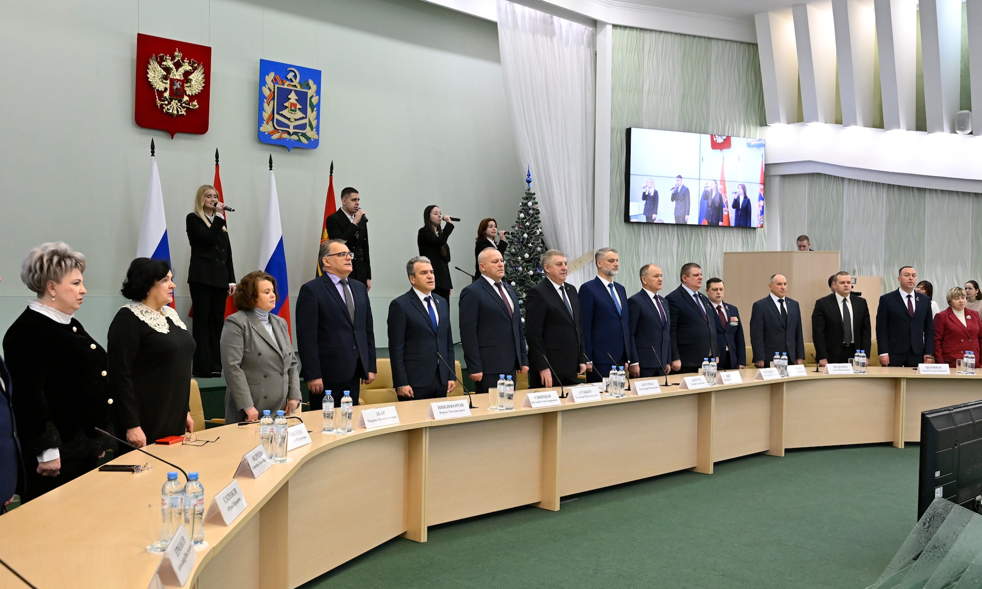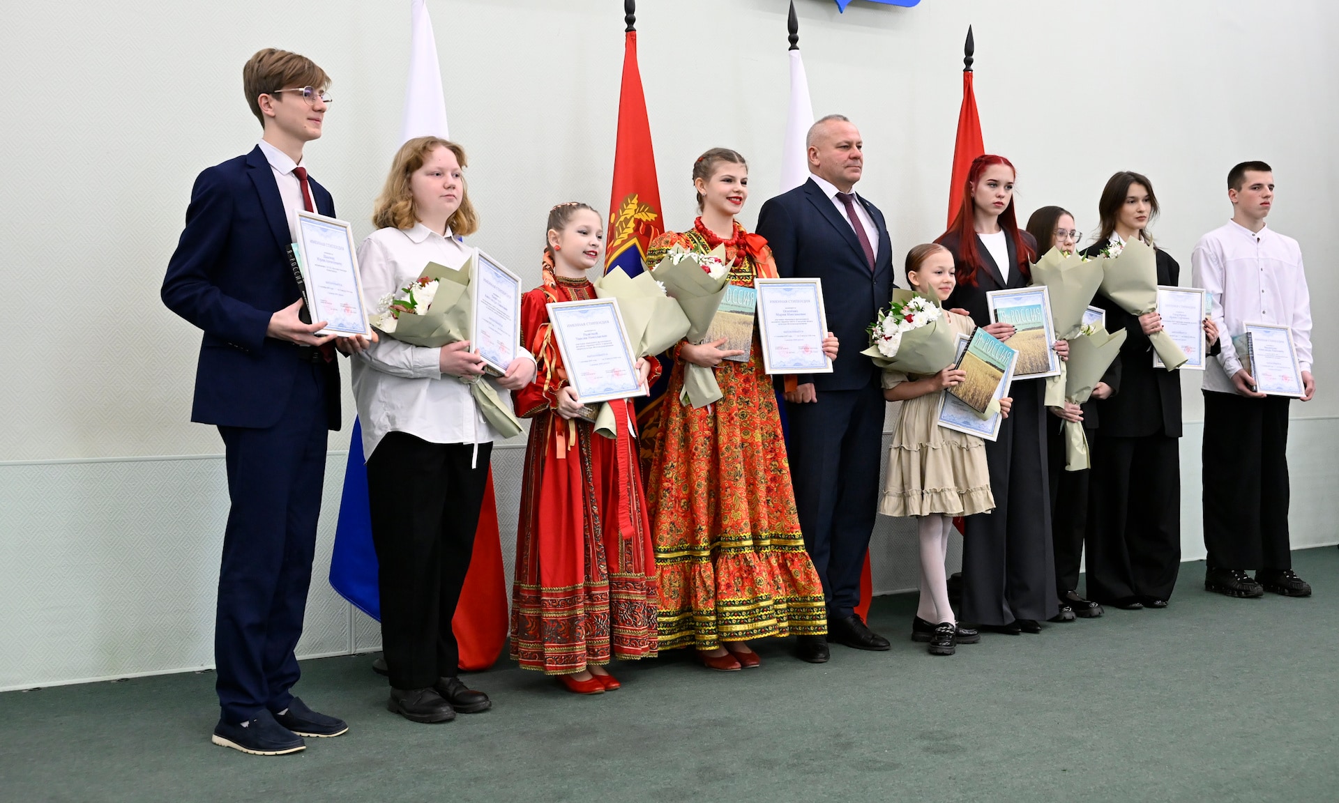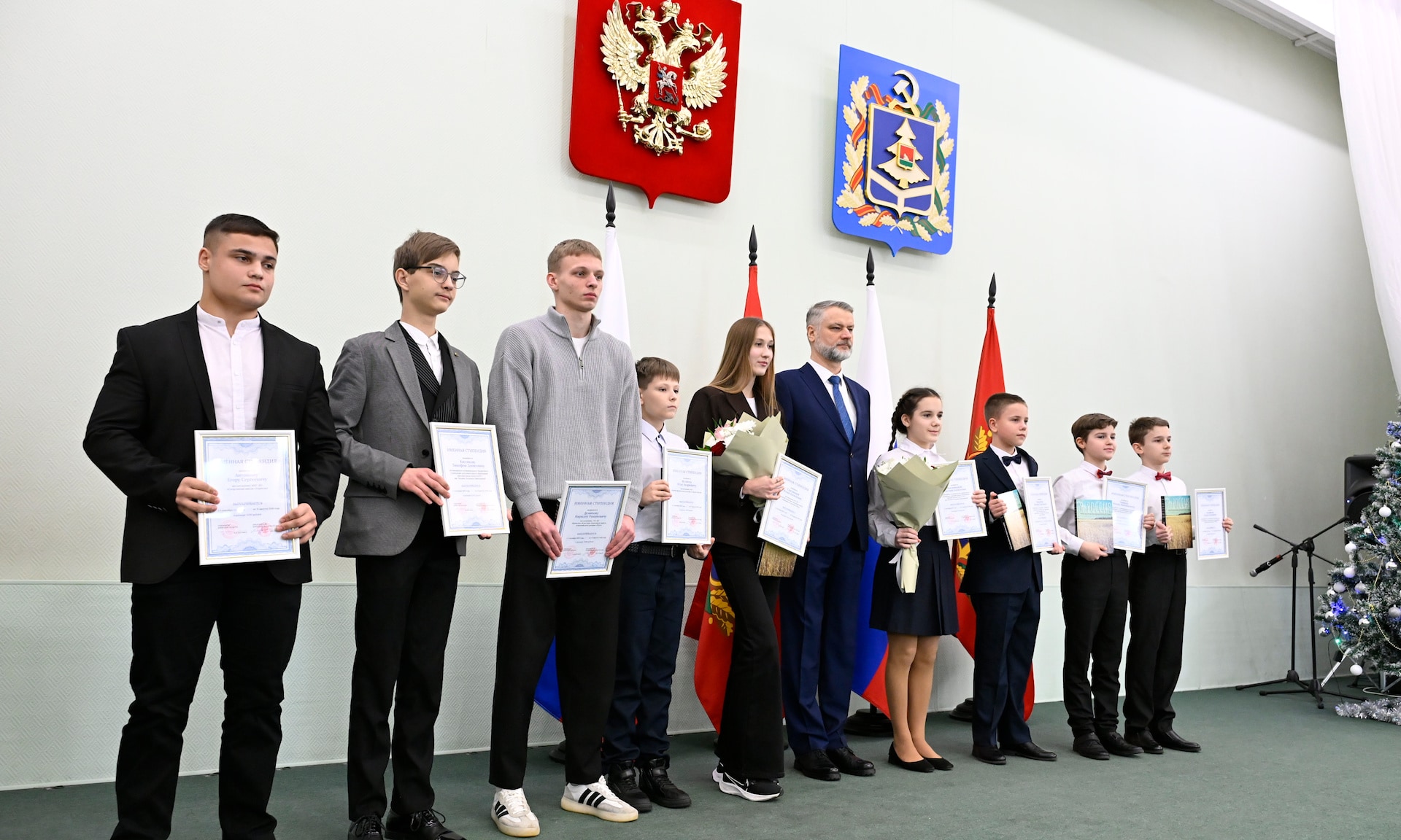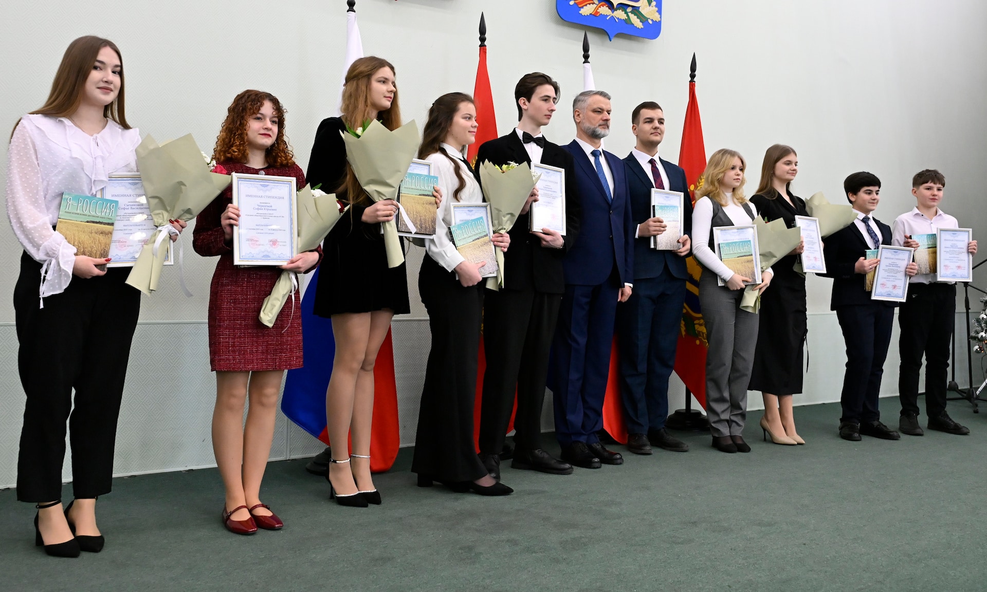 — От себя лично и от имени депутатов Брянской областной Думы рад приветствовать в этом зале одарённых ребят — именных стипендиатов — тех, кто прославляет наш край, служит настоящим примером.