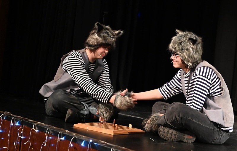 И вот уже начали собираться школьники на представление «Маша, Мишка, Новый Год», созданное подростковой и молодёжной группами театральной студии «ИСТОК».
