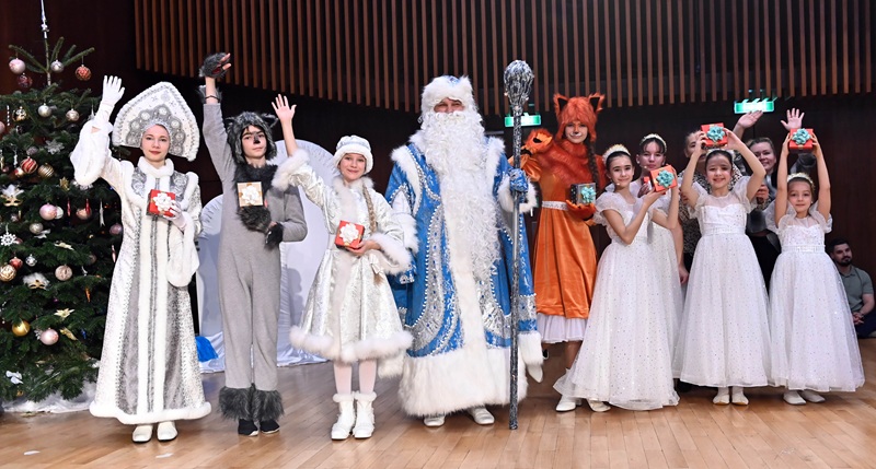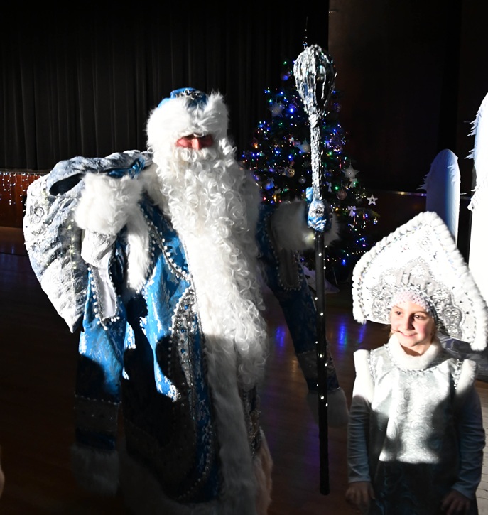 Тут и ёлочка-красавица, и сказочные герои, которых можно потрогать руками, а главное, много подвижных игр и веселых танцев, в которых участвуют все: и герои сказки, и маленькие зрители, и преподаватели, и мамы с папами, и Дед Мороз со Снегурочкой!