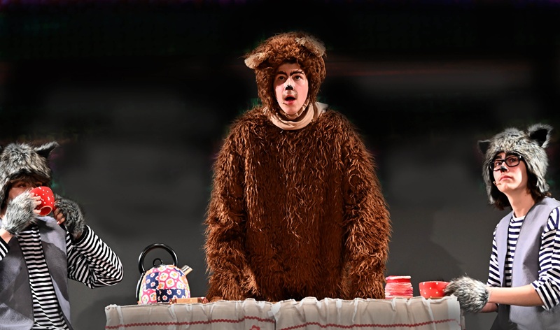 Спектакль собрал на сцене героев известного мультсериала: умного, интеллигентного Медведя; вечно голодных, невоспитанных, но с чувством юмора Волков; суперпродвинутую Свинку Розочку; шустрых, вороватых Зайцев и (ну как же без неё ?!), шаловливую, непослушную, немножко вредную Машу.