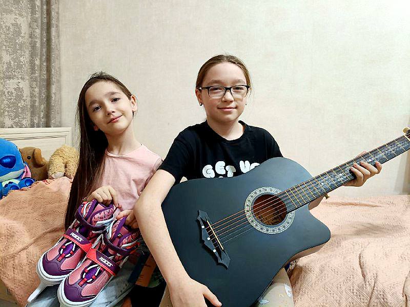 На ветвях «Ёлки желаний» оказались новогодние послания от двух сестер – Карины и Александры. Девочки, полные предпраздничного волнения, написали о своих самых заветных желаниях: о гитаре и коньках.