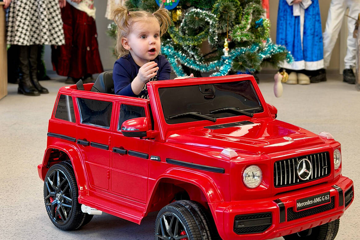 Василиса Овчаренко из Рубежного получила детский электромобиль. Ее отец участвует в СВО, и подарком девочке создали праздничное настроение.
