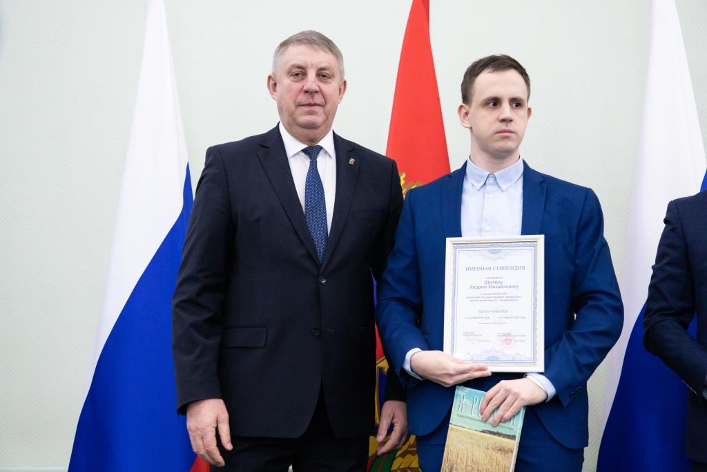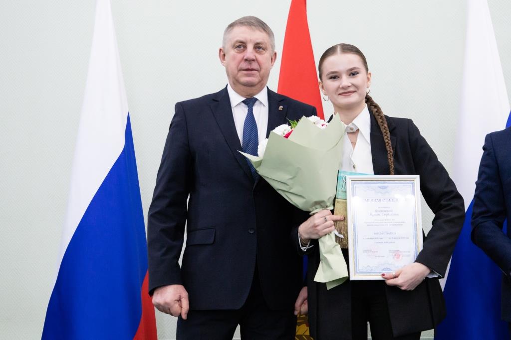Девяти студентам нашего университета Губернатором Брянской области А.В. Богомазом были вручены сертификаты на получение стипендии. По представлению Ученого совета университета и в соответствии с решением Комиссии именные стипендии Брянской областной Думы и Правительства Брянской области получили следующие студенты и магистранты нашего вуза: