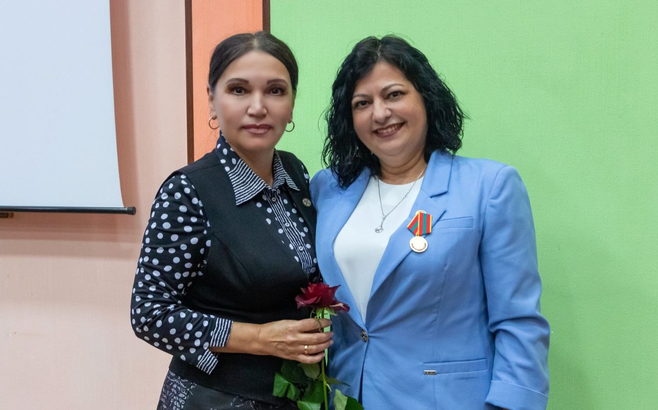 Так, за большой вклад в организацию и совершенствование учебного и воспитательного процесса, высокий профессионализм и в связи с 35-летием со Дня образования экономического факультета медалью «За отличие в труде» отмечен декан экономического факультета доцент И.Н. Узун. За многолетний добросовестный труд, большой вклад в развитие высшего профессионального образования, подготовку высококвалифицированных специалистов и активную педагогическую деятельность медалью «За трудовую доблесть» наградили проректора по образовательной политике и менеджменту качества обучения доцента О.В. Еремееву. Медаль «35 лет Приднестровской Молдавской Республике» вручили и.о. заведующего кафедрой русской филологии филологического факультета профессору Е.А. Погорелой, и.о. заведующего кафедрой хирургии Медицинского института им. Н.В. Склифосовского профессору А.А. Ботезату, профессору кафедры истории факультета государственного управления и социально-гуманитарных наук В.С. Синике, специалисту естественно-географического факультета А.М. Гришиной, профессору кафедры биологии и экологии естественно-географического факультета В.А. Шептицкому.