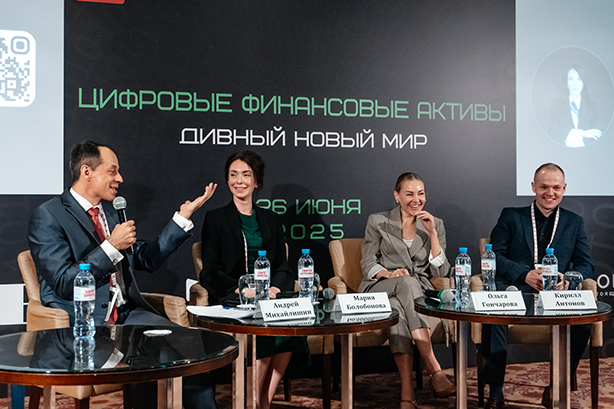 Андрей Михайлишин («Цифровые платежи»), Мария Болобонова (НАУФОР), Ольга Гончарова (АБР), Кирилл Антонов (Web3 Tech). Фото: «Б.О»