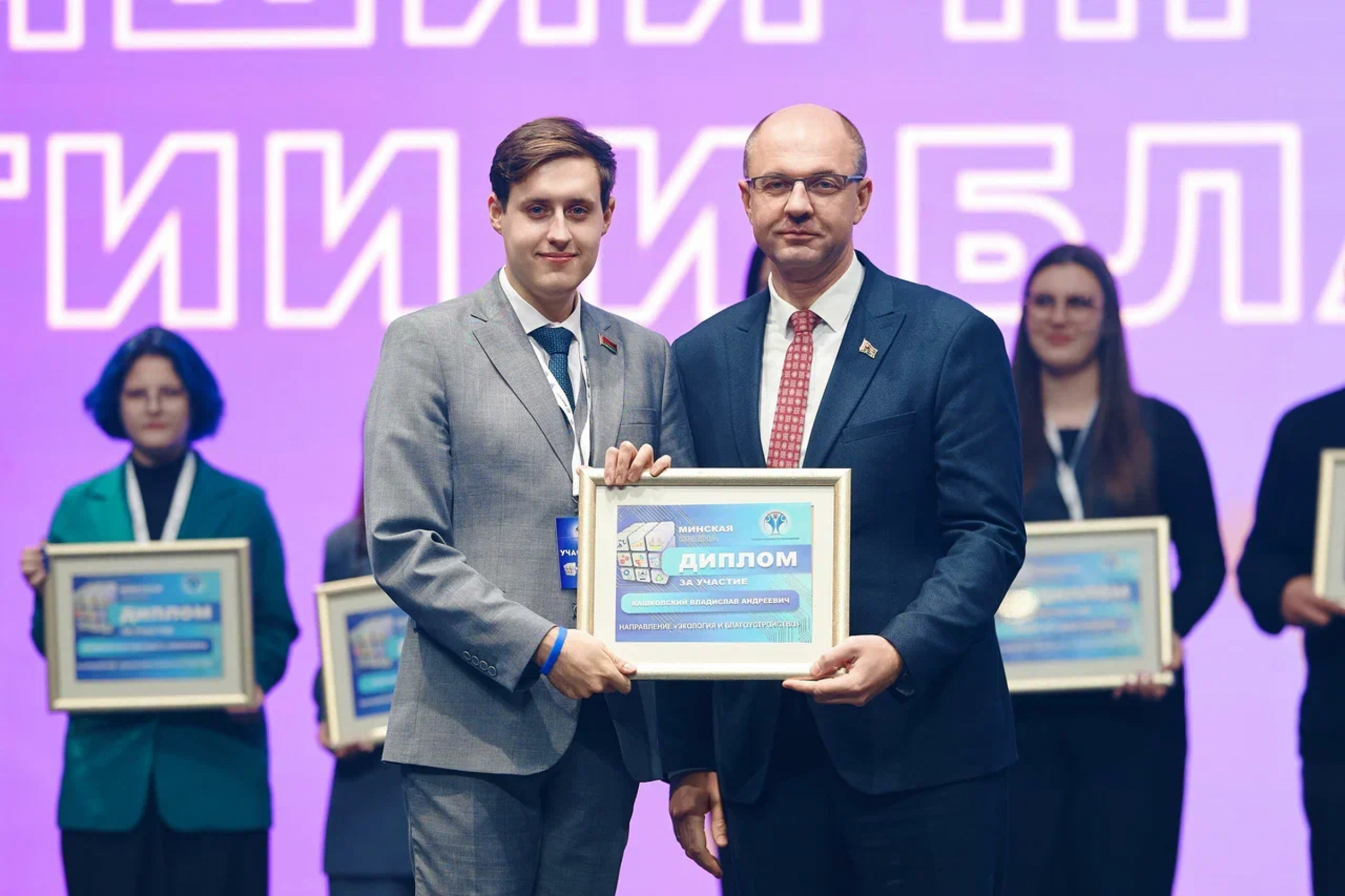 По оценке компетентного жюри в направлении «Экология и благоустройство» победили студенты БНТУВладислав Кашковский,Ульяна Верамейчик,Елизавета Тарасевич,Максим Давидовичс концепцией комплексного развития ландшафтных территорий Лошицкой и Слепянской водных систем «Парк Писателей» по проспекту Независимости. Проект ребят стал ярким примером того, как молодежные инициативы могут способствовать улучшению городской среды и сохранению экологии, вдохновляя других на активное участие в решении актуальных проблем города.