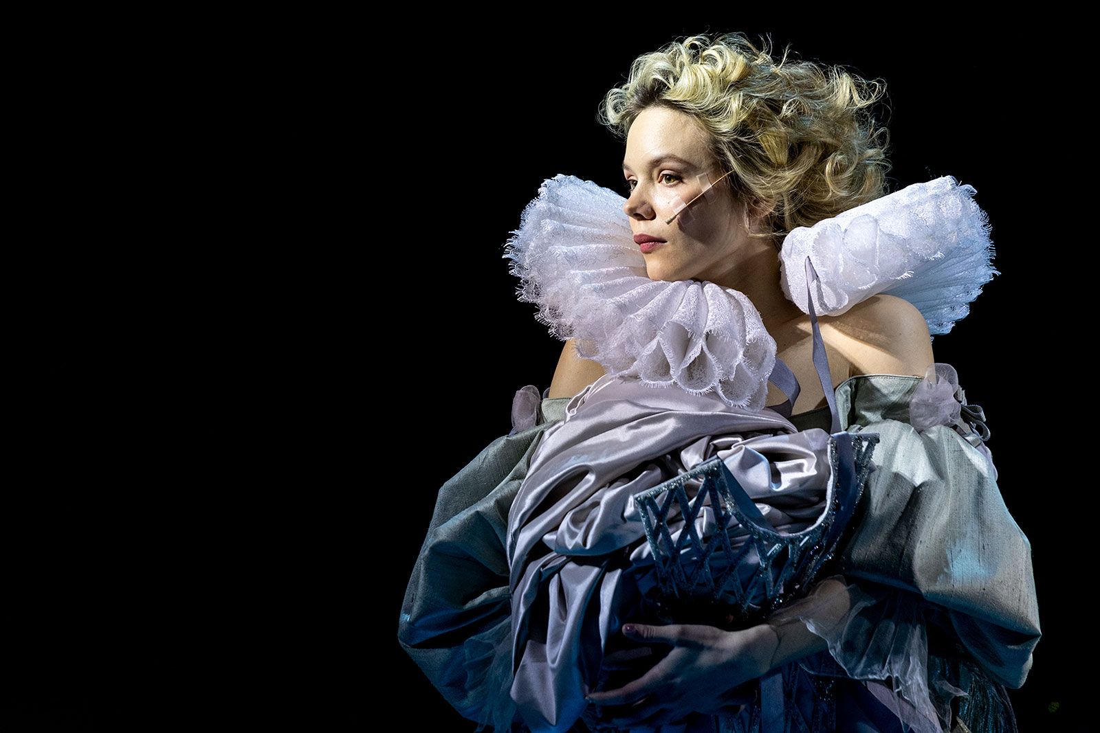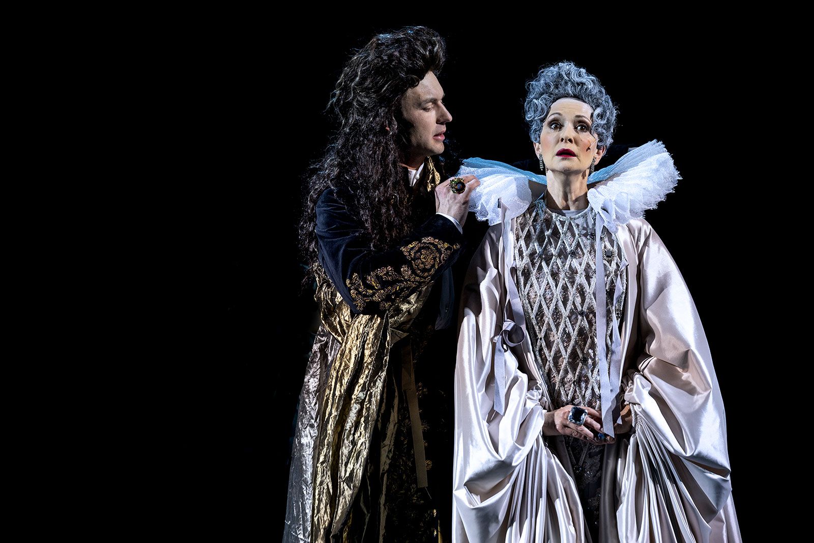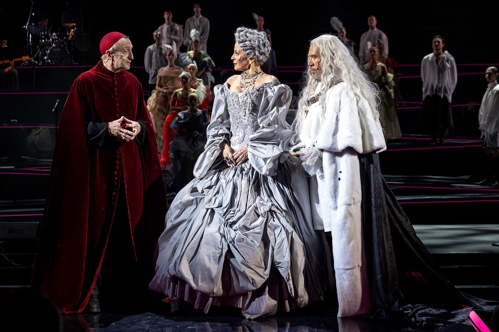 Констанция (Юлия Бурова и Анастасия Белова) ломает четвертую стену и оказывается в зрительном зале: пролезает через ряд, комментирует то, что видит, и забавно проводит параллели с веком, в котором разворачивается история: «Ну вы что, у нас же тут все по-другому». Король Людовик XIII (заслуженный артист России Валерий Яременко, в другом составе Владимир Прокошин) предстает комичным персонажем, по словам Евгения Марчелли, так и не выросшим ребенком.