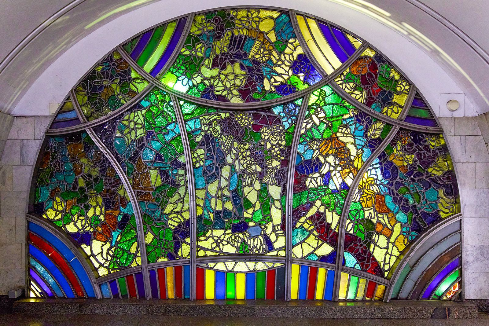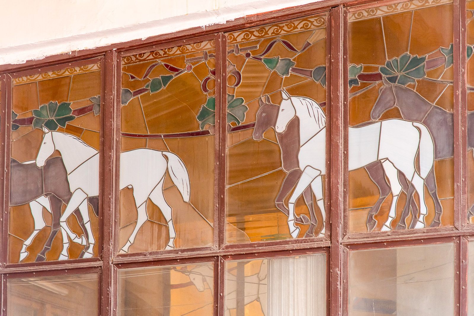 А еще лошадь — один из главных артистов цирка. В этом амплуа она предстает на станции метро «Цветной бульвар», открытой в 1988 году. Если приглядеться к витражу в переходном зале, можно различить клоунов Юрия Никулина, Олега Попова и Михаила Румянцева, медведя на велосипеде, канатоходцев, акробатов, слона и всадника на коне.