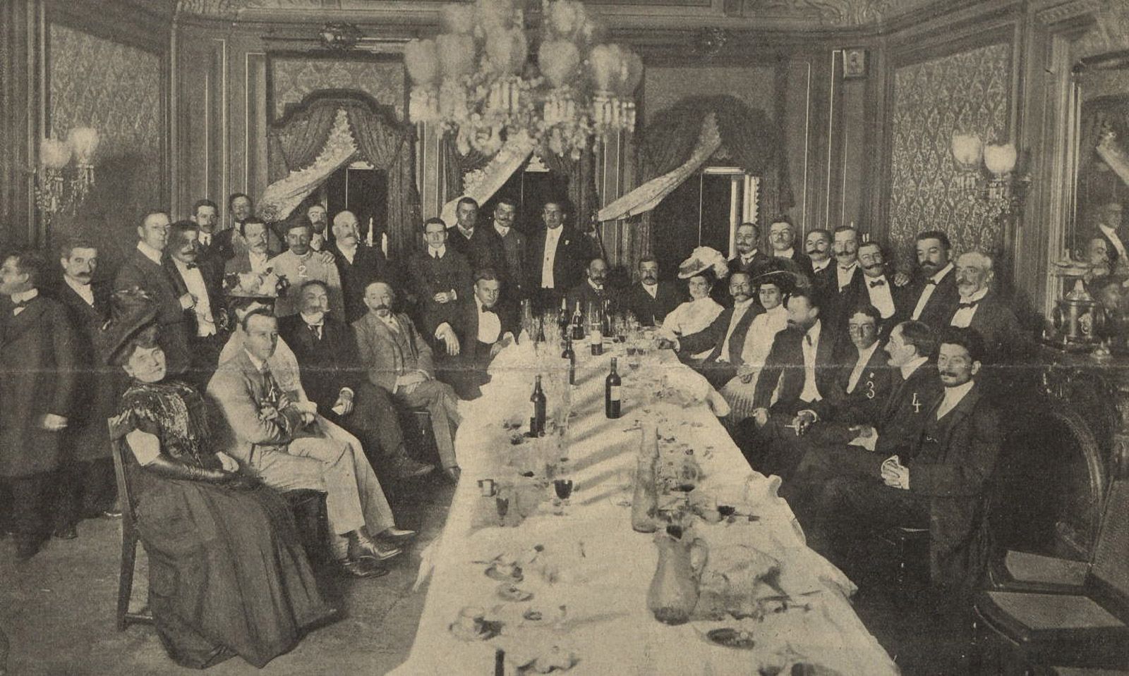 «И с песнями вкатываются толпы в роскошный вестибюль “Эрмитажа”, с зеркалами и статуями, шлепая сапогами по белокаменной лестнице, с которой предупредительно сняты, ради этого дня, обычные мягкие дорогие ковры. <…> Традиционно в ночь на 12 января огромный зал “Эрмитажа” преображался. Дорогая шелковая мебель исчезала, пол густо усыпался опилками, вносились простые деревянные столы, табуретки, венские стулья… В буфете и кухне оставлялись только холодные кушанья, водка, пиво и дешевое вино. Это был народный праздник в буржуазном дворце обжорства», — говорится в очерке «Студенты».