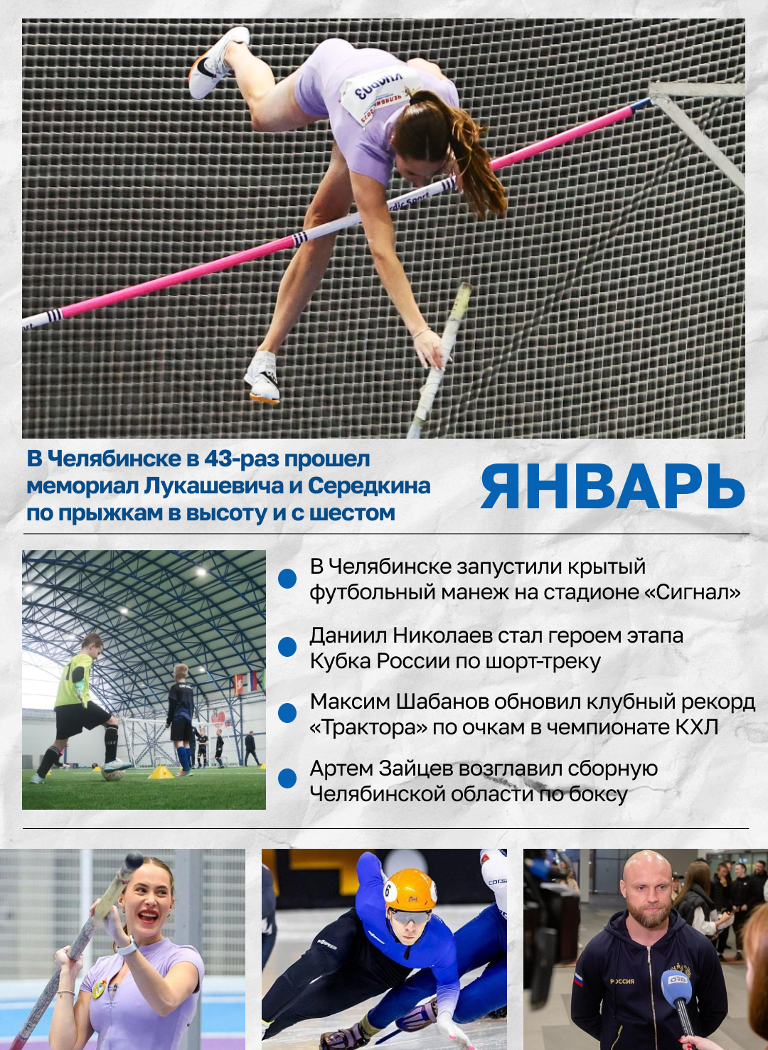 Январь: прыгуны-высотники боролись за победу на мемориале Лукашевича и Середкина, а главной героиней соревнований в Челябинске стала Полина Кнороз