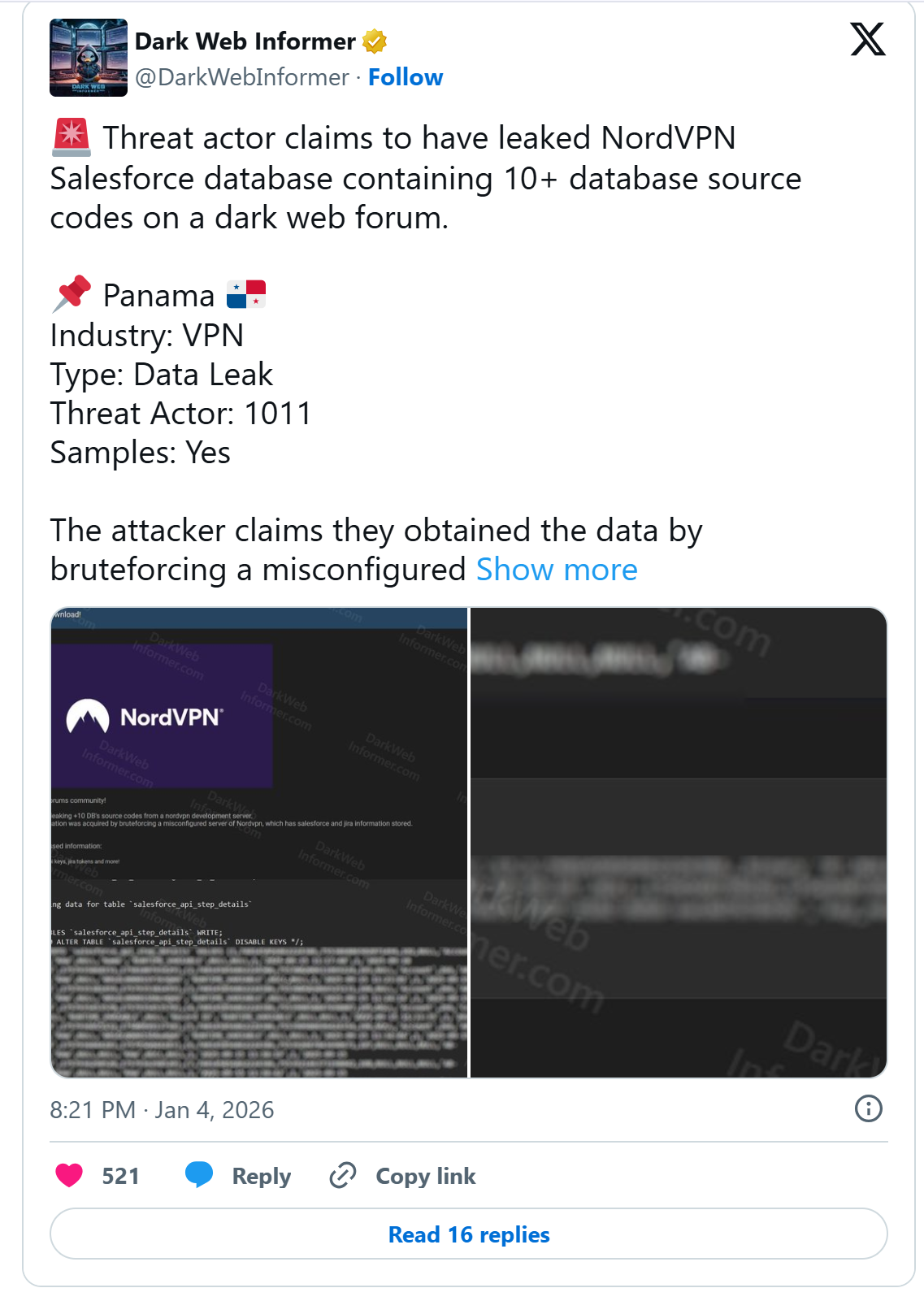 На теневых форумах появилось громкое заявление о возможной утечке данных из инфраструктуры разработки NordVPN. Неизвестный злоумышленник под ником 1011 утверждает, что получил доступ к внутренним системам компании и уже выложил часть материалов в открытый доступ в даркнете.
