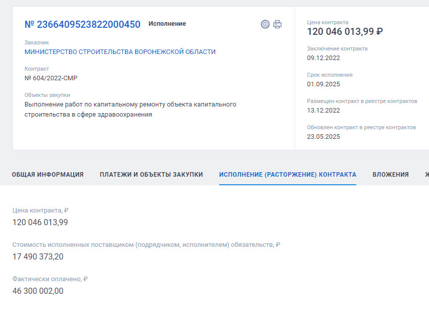 Не менее занимательным вышел фантомный объект на востоке Воронежской области. Речь идет о Грибановской районной больнице, здание которое должны были капитально отремонтировать за 120 млн рублей. За 2,5 года с момента подписания госконтракта подрядчик смог освоить менее 10% от общей стоимости закупки.
