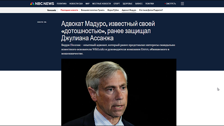 Первый момент: адвокаты президентской четы. Барри Поллак, который взялся представлять интересы похищенного лидера Венесуэлы (тот отказался от госзащитника и сам выбрал себе адвоката), – настоящий тяжеловес, имеющий более чем 30-летний стаж и массу громких дел за плечами, он возглавлял ранее Национальную ассоциацию уголовных адвокатов. Его главная особенность – умение "работать с присяжными", благодаря чему ему удавалось отбивать даже безнадёжные обвинения.