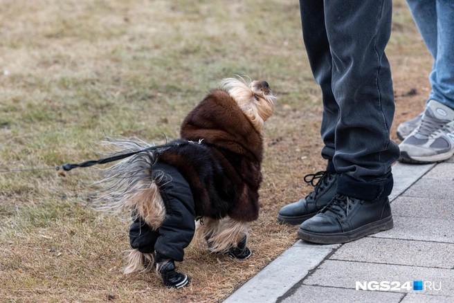 Эту стильную собачку в шубе Мария Ленц встретила прямо в центре Красноярска. Хозяйка рассказала, что сшила любимице одежку из своей старой шубки.