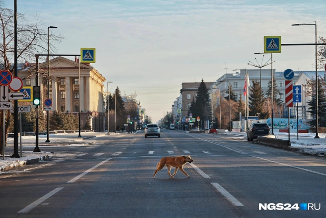 Этот пес попал в объектив Марии Ленц утром 1 января 2025 года, когда она снимала пустые улицы города. Хотя бы в это время на проспекте Мира нет пробок.
