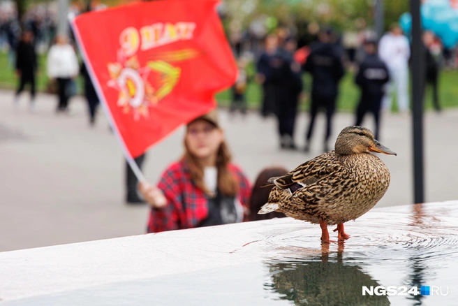 На съемке праздника 9 Мая в кадр попала утка. Не птица мира, конечно, но почему бы и нет.