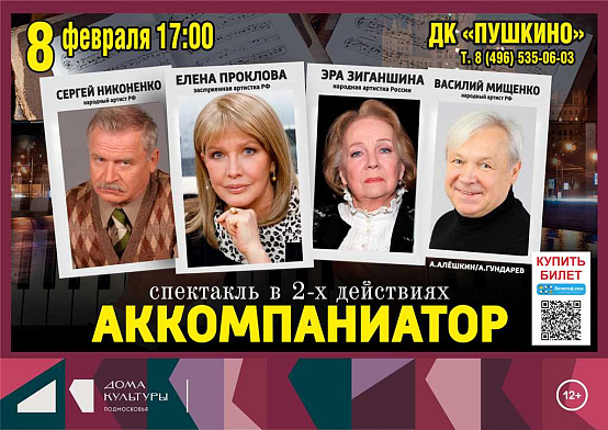 8 февраля в 17:00 а ДК «Пушкино» лирическая комедия продолжительностью 2 часа 30 минут (один антракт) 12+. Лучшие русские актеры расскажут трогательную, пронзительную в своей современности, историю любви, судьбы, радости прощения, подарят Вам огонек душевного тепла, который привнесет в Вашу жизнь новые краски.