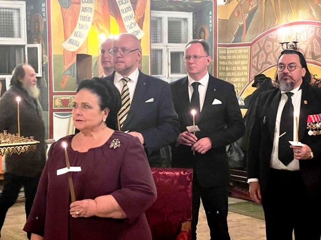 Великая княгиня помолилась за упокой души императора Александра I, 200-летие со дня его смерти отмечалось в день его кончины. Царь Александр I скончался 19 ноября 1825 года, что соответствует 1 декабря по григорианскому календарю. Службу совершил настоятель храма, протоиерей Дмитрий Лин, в сослужении нескольких высокопоставленных представителей московского духовенства.