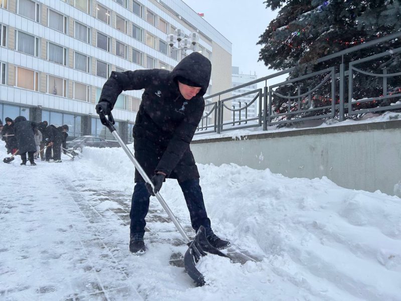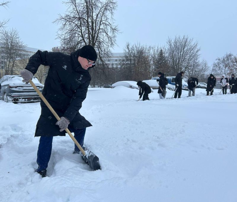 Студенты и сотрудники БГУФК также вышли на борьбу со снежными сугробами. Они не только очищают территорию нашего университета от снега, но и создают более комфортные и безопасные условия для передвижения.